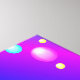 A bright and bold background accents a fun design of floating coloured bubbles.