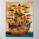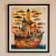 Floating Castle on a Ship – Folk Art Oil Painting Poster Bring a touch of whimsy and wonder to your space with this enchanting folk art oil painting poster featuring a floating castle atop a majestic ship, surrounded by swimming fish. This dreamy and surreal artwork blends maritime fantasy with folk art charm, making it a perfect statement piece for any room.