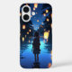 Beautiful anime phone case depicting a girl admiring floating paper lanterns at night. Perfect for fans of dreamy anime nights, pastel lights, and magical scenery.