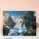 This digital illustration transports the viewer to a dreamlike landscape of floating mountains that challenge gravity. The design captures a scene of mystical nature and tranquility, with majestic rock formations suspended in the sky. The piece uses a palette of soft colors to create an atmosphere of serenity and mystery. It is a work of original fantasy, ideal for home decoration and any product that seeks a unique design and evokes an imaginary world. The work combines elements of fantastic architecture and epic landscaping.