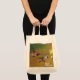 The printing came out very well, better than I had anticipated. The natural color fabric is sturdy with strong seams and comfortable handles. This tote fits easily over my shoulder. As it is filled, the bottom flattens out--very cool! I would buy this product again. This grocery tote holds a lot of groceries! The image quality was very good. The colors were a little darker than I had expected. The darkness may have been due to printing on a natural color fabric rather than on white. The cat design is attractively centered on the tote. The spirit of the design is very lively, just as it appears on the Zazzle website.