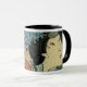 The pictured geisha is hiding behind a screen from a man hunting with an upturned samuri blade. The full ukiyo-e theatre print will be released shortly as a fine art print. The original print dates from the 1800s and probably comes from Edo. This mug is part of a series.