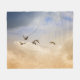 This design features an image of a flock of birds, flying through a cloudy blue sky. Sunlight is streaming in the distance. The animals in flight can be seen as symbols of freedom or simply as a beautiful sight.