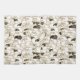a huge flock of very happy black and white cartoon sheep are covering this kitchen towel.