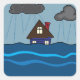 A flooded house with dark clouds and rain. This design looks really effective on these Stickers