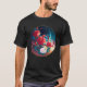 I give wanted to give this a 4 instead of a 5 because these Basic DARK T0shirts run unexpectedly SLIM or Narrow. Which is great if you do not have a potbelly, but I have a paunch. It isn't the shirt's fault that I've got a beer belly. The design and shirt itself is a quality cotton shirt. The color is more of a deep purple, but still a very pretty color. The Basic DARK T-shirts run a bit SLIMMER than the Basic Ts. The neck is a fraction narrower (or seems to be narrower) also. I'm a paunchy middle-aged woman and my neck is 12 inches (31cm) thick and the neckline fell about the same as in the photo of the man, and I had the desire to tug it a bit. So if you're a thick necked man or like loose shirts, be aware these are slimmer shirts. Once I get rid of my lockdown paunch it'll look great. The shirt washed well in cold water with no apparent bleeding. We don't have a dryer, so it hung dry. Did not shrink. Love the colors and the design. The design looks smaller on my shirt than it does on the model on-line. But still, it looks good on the shirt. The printing looks as it does on the model, just the size seems fractionally smaller. Washed garment in cold water, hung dry and design appeared unaffected.