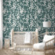 Flora wallpaper in teal and white