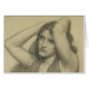 Vintage pencil study of young lady in Renaissance gown pulling her long hair back over her shoulders. Artwork by Victorian era artist John Waterhouse.