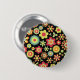 An attractive floral design with colorful stylised flowers on a black background the design also has a subtle paper texture.