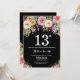 Floral 13th Birthday Invitation for Girl. Watercolor Floral Flower. Black Chalkboard Background. Pink, Yellow, Orange, Purple Flower. Kids Birthday. For further customisation, please click the "Customise it" button and use our design tool to modify this template.