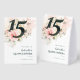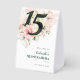 Cute modern yet elegant Quinceañera Mis Quince Anos birthday party Table Tent. Rustic floral greenery and pink rose foliage. The template that can be easily edited and the text replaced with your own details by clicking the "Personalize" button. For further customization, please click the "Customize Further" link and use our design tool to modify this template.
