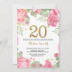 Floral 20th Birthday Invitation Gold Glitter