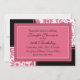 Custom 30th Birthday party invitations in elegant black, white, and honeysuckle pink floral pattern. Add your name and party details for a unique and stylish birthday party invitation.