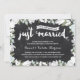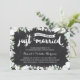 This elegant, modern 55th wedding anniversary invitation features lovely brush script calligraphy, beautiful blue and white flowers, typography that reads "Just Married (fifty-five years ago!)," and a rustic chalkboard background.