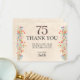 Express heartfelt gratitude with this elegant 75th birthday thank-you card, featuring a bold “75” atop soft watercolor wildflowers. Designed in a chic pastel palette with floral script accents, this keepsake card is perfect for a sophisticated and memorable milestone celebration. Enjoy!