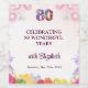Make your 80th birthday celebration extra special with this personalised wine bottle label. Featuring a beautiful floral design and the number "80" adorned with colourful flowers, this custom label is perfect for marking such a memorable milestone. Personalise it with the celebrant's name and the date of the event for a unique touch. Ideal for wine bottles, this label is a charming addition to any party and makes a wonderful keepsake. Elevate your celebration with this elegant and personalised wine bottle label that will delight your guests and add a touch of sophistication to your event. Enjoy!