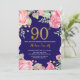 Floral 90th Birthday Invitation for Women. Watercolor Botanical Floral Flower. Gold Glitter. Navy Blue Background. Pink Peonies Floral Flowers. Adult Birthday. For further customisation, please click the "Customise it" button and use our design tool to modify this template.