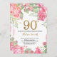 Floral 90th Birthday Invitation for Women. Watercolor Botanical Floral Flower. Gold Glitter. Pink Peonies Floral Flowers. Adult Birthday. For further customisation, please click the "Customise it" button and use our design tool to modify this template.