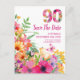 90th birthdayfloral save the datemilestone celebrationelegant invitecolourful floral designwatercolor flowers90 years garden partybirthday stationerypersonalised announcementvibrant floral