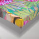 Lovely flowers are depicted in this abstract work of art presenting various prints and patterns in analogous colours resulting in a nice example of mixed media.