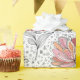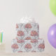 Abstract doodle art style flowers in peach and pink decorate this gift wrap. AI-generated by IveyCottage.