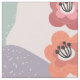 An abstract floral pattern in muted shades of pink, orange, blue, green and purple.