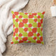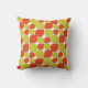 This pillow features an abstract flower petal or teardrop pattern is based on similar retro Mid Century Modern motifs of the 1950's, 1960's and even into the early 1970's. It is created in a contemporary colour scheme of citrus orange and green.