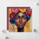 Celebrate African beauty with this bold digital painting of a Black woman crowned with vibrant flowers. A perfect mix of power and grace for your loved ones.