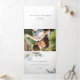 New pretty invitation in a floral and botanical greenery design. The outside middle flap features your couples photo. Details are set in a trendy script typography with a traditional serif face font. A boarder of watercolor flowers and foliage frames your event information in cool shades of dusty blue, grey and green leaves. Personalise each flap with your wedding details, photo and return address. This all in one invite is perfect for spring, summer, fall and winter marriage announcements or garden themed weddings.. To see more watercolor printed wedding invitation suites visit www.zazzle.com/vginvites