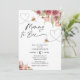 Sweet bee themed girls baby shower invitation featuring two bee, heat lines and two floral arrangements. This mommy to bee bridal shower invitation also features a modern calligraphy heading.