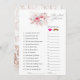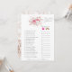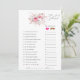Trendy pink and white roses and lace bridal shower game cards with accents of rose gold foil designed to be quickly and easily customised to your event specifics.
