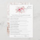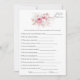 Trendy pink and white roses and lace bridal shower game cards with accents of rose gold foil designed to be quickly and easily customised to your event specifics.