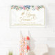 Celebrate any wedding anniversary with this personalised floral banner sign featuring an elegant gold calligraphy script typography design # YEARS INTO FOREVER (editable for couple's number of years married) accented with gold interlocking linked hearts and your custom text. An array of blue, pink, peach and white flowers with gold and green botanical accents are versatile to complement many anniversaries. Contact the designer via Zazzle Chat or makeitaboutyoustore@gmail.com if you'd like this design modified, on another product or would like coordinating items.
