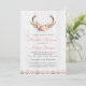 Floral Antler Boho Rustic White Wood Bridal Shower Invitation