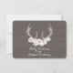 A wedding r.s.v.p. featuring an illustration of deer antlers decorated with pastel flowers and daisies. Background is barnwood inspired. Personalise the text.