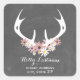 An address sticker featuring an illustration of a pair deer antlers decorated with pink and white daisies. Background is chalkboard inspired. Personalise with your name and address.