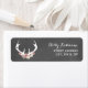 An address label featuring an illustration of a pair of deer antlers decorated with pink and white daisies. Background is chalkboard inspired. Personalise the text with your name and address.