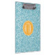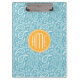 Floral Aqua Blue Paisley Pattern & Yellow Monogram Clipboard