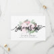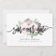 This design features a soft pink watercolor flower arrangement behind the words "save the date" in bold black handwritten script. Couple's names and wedding details are displayed below and can be customised. Graphics ©Create The Cut