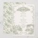 Elevate your wedding announcement with the Art Nouveau Floral Wedding Invitation Suite, a stunning tribute to the elegance of a bygone era. This exquisite design features intricate lily flowers and flowing leaves in a serene palette of soft white, sage green, and subtle gold, beautifully set against a cream background. The back showcases a monogram emblem intertwined with a graceful tree of life, symbolizing the unity of two souls. With its timeless sophistication, this invitation suite is the perfect way to immerse your guests in the romance and beauty of your special day.