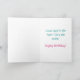 This card is great fun and good quality. I loved the humour inside and on the back. There is the opportunity to change the orientation of this card from landscape to portrait, which I did. It is relatively straightforward to amend the typeface to fit the new orientation. It was well packaged with no plastic. The printing on this card is excellent.