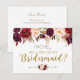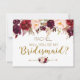 Will You Be My Bridesmaid Card with burgundy, marsala floral design. Perfect for your romantic autumn wedding.