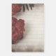 A set of 4x6 sticky notes with an floral themed photograph. Faded lined writing paper with some pretty red flowers and green leaves placed around the edges.