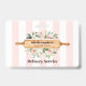 Identify your employees for delivery service with these custom printed badges featuring a watercolor rolling pin illustration over a striped girly pink and white background and pink and white roses and green leaves. Perfect professional look for your bakery services, catering, restaurant, cake designer, pastry chef, personal chef and more.