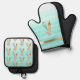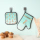 Floral Bakery Tools Mint Green Stripes Oven Mitt & Pot Holder Set