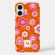 This boldly colourful flower power iPhone case is ready for your monogram. Repeating 60's style folk flower print is created in a bright palette of hot pink, white and orange red, with your monogram sharply accented, ready for you to edit with the click of a mouse. Choose your model and style in the drop down menu of options