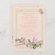 A soft, off-white background with a "marble" frame is beautifully embellished with a floral spray of pink and white flowers. It is accented with pink and green ribbons and a bow. This is a coordinating invitation to the Floral Baptismal Program for the Greek Orthodox Faith.