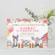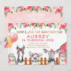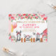 Sweet barnyard or farm themed birthday invitation with removable faux gold heading. This design features some pink flower header and four cute farm animals, some balloons and barn. Perfect for a farmyard, barnyard or farm themed girls birthday party.