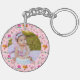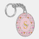 Floral Bee & Flowers Pattern Pink Monogram Key Ring