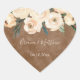 Floral Beige Blush on Brown Wedding Favours Heart Sticker